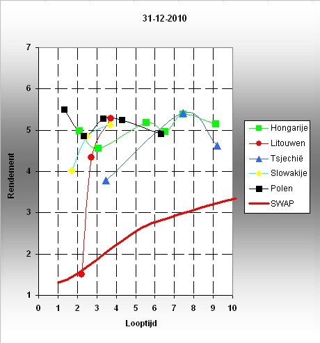 Als de rente stijgt dalen de koersen van obligaties en vice versa. De koersfluctuatie is groter naarmate de looptijd van de obligatie langer is. Managers van beleggingsfondsen zullen daarom bij een verwachte rentedaling de looptijd van hun obligatieportefeuille verlengen en verkorten bij een verwachte rentestijging. Zij hopen daardoor een hoger rendement te behalen dan bij een statische strategie. Verder kunnen zij hun posities in verschillende landen verhogen of verkleinen. Voorzichtige managers zouden hun posities in Griekenland bijtijds verkocht hebben. Het managementfee en de overige kosten (de Total Expense Ratio of TER) zijn iets hoger dan 1%. Als het fonds niet op de beurs is genoteerd, betaalt u zowel 0.5% aankoopkosten als 0.5% verkoopkosten. Bij beursgenoteerde beleggingsfondsen zal uw bank naast deze TER jaar bewaarloon in rekening brengen. Als in 2013 de Europese richtlijn voor UCITS IV in de Europese lidstaten van kracht wordt, is het deze fondsen niet toegestaan meer dan 35% in één landendebiteur te beleggen. Dus het wordt voor deze fondsen dan verboden om meer dan 35% Nederlandse staatsleningen te bezitten!